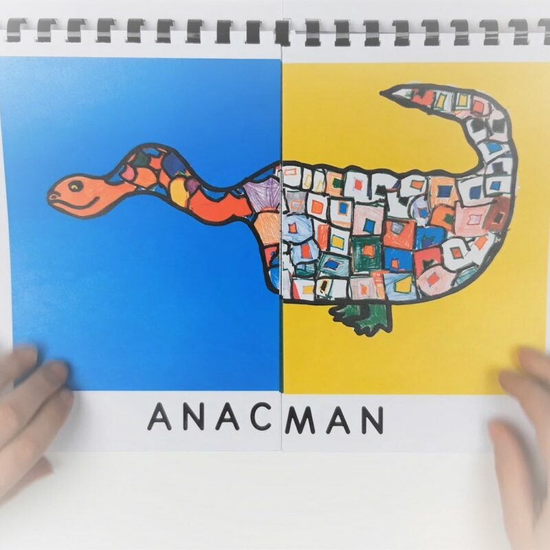 Chaque enfant fabrique un livre accordéon et l’illustre en utilisant la technique des taches. Cette technique permet de donner libre cours à l’imagination et à la créativité en partant du hasard d’une tache.